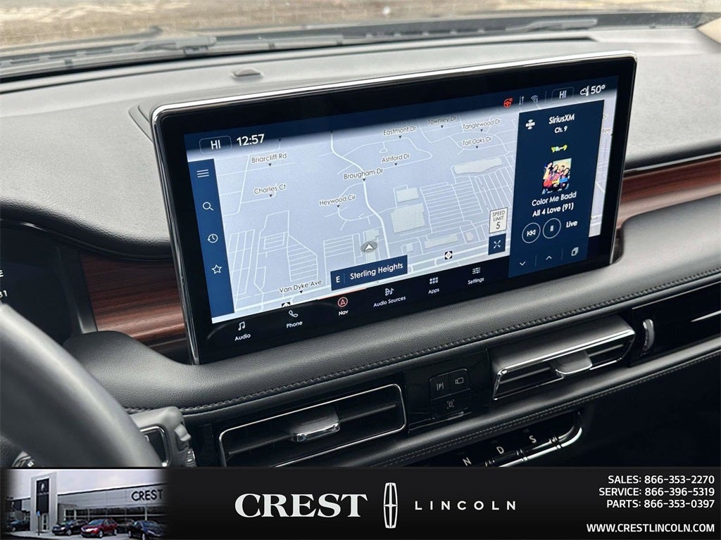 Cargo Accessories & Mat Package (43D) (All-Weather Floor Liners w/o Carpet Mats, Durable Lightweight Rubber Cargo Mat, and Rear Bumper Anti-Scratch Pad/Load Protector), Equipment Group 201A (Phone As A Key and Wheels: 20 Prem Painted Bright Machined Aluminum), Lincoln Co-Pilot360 1.0 Plus Package (360 Degree Camera, Active Park Assist 2.0, Adaptive Cruise Control, Distance Indication & Alert, Evasive Steering Assist, and Forward-Side-Rear Parking Sensors), 10 Speakers, 3.80 Axle Ratio, 4-Wheel Disc Brakes, ABS brakes, Adaptive Suspension, Air Conditioning, Alexa Built-In, Alloy wheels, AM/FM radio: SiriusXM with 360L, Auto High-beam Headlights, Auto tilt-away steering wheel, Auto-dimming door mirrors, Auto-dimming Rear-View mirror, Automatic temperature control, Brake assist, Bumpers: body-color, Compass, Delay-off headlights, Driver door bin, Driver vanity mirror, Dual front impact airbags, Dual front side impact airbags, Electronic Stability Control, Emergency communication system: 911 Assist, Four wheel independent suspension, Front anti-roll bar, Front Bucket Seats, Front Center Armrest w/Storage, Front dual zone A/C, Front reading lights, Fully automatic headlights, Garage door transmitter: HomeLink, Heated door mirrors, Heated front seats, Heated rear seats, Heated steering wheel, Illuminated entry, Knee airbag, Leather steering wheel, Low tire pressure warning, Memory seat, Navigation System, Occupant sensing airbag, Outside temperature display, Overhead airbag, Overhead console, Panic alarm, Passenger door bin, Passenger vanity mirror, Power door mirrors, Power driver seat, Power Liftgate, Power moonroof: Panoramic Vista Roof, Power passenger seat, Power steering, Power windows, Premium Lthr-Trmmd Heated/Ventilated Comfort Seats, Radio data system, Radio: AM/FM/HD Audio System, Rain sensing wipers, Rear anti-roll bar, Rear reading lights, Rear seat center armrest, Rear window defroster, Rear window wiper, Remote keyless entry, Security system, Speed control, Speed-sensing steering, Speed-Sensitive Wipers, Split folding rear seat, Spoiler, Steering wheel memory, Steering wheel mounted A/C controls, Steering wheel mounted audio controls, SYNC 4 w/Enhanced Voice Recognition, Tachometer, Telescoping steering wheel, Tilt steering wheel, Traction control, Trip computer, Turn signal indicator mirrors, Variably intermittent wipers, Ventilated front seats, Wheels: 18 Premium Painted Bright Machined Alum, and Wheels: 21 Premium Painted Bright Mach Aluminum.