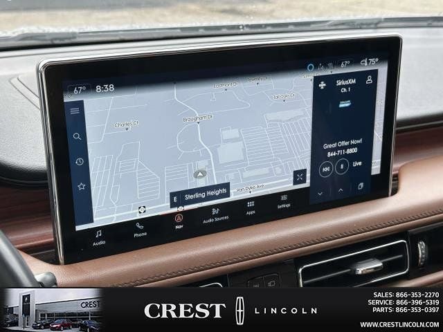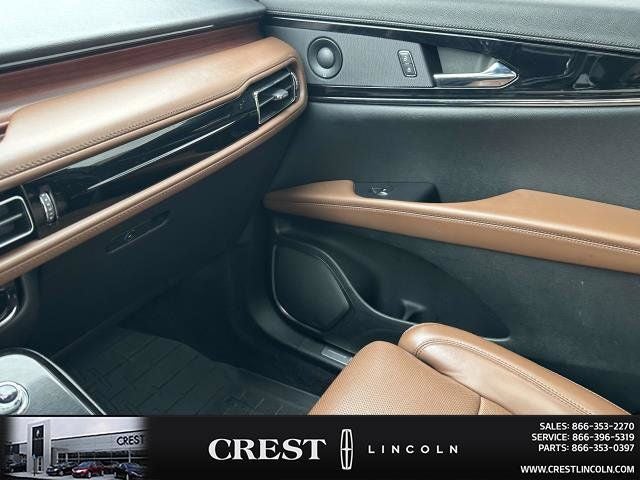Equipment Group 201A (Phone As A Key and Wheels: 20 Prem Painted Bright Machined Aluminum), Lincoln Co-Pilot360 1.0 Plus Package (360 Degree Camera, Active Park Assist 2.0, Adaptive Cruise Control, Distance Indication & Alert, Evasive Steering Assist, and Forward-Side-Rear Parking Sensors), Lincoln Certified Pre-Owned Certified, 10 Speakers, 3.80 Axle Ratio, 4-Wheel Disc Brakes, ABS brakes, Air Conditioning, Alexa Built-In, Alloy wheels, AM/FM radio: SiriusXM with 360L, Auto High-beam Headlights, Auto tilt-away steering wheel, Auto-dimming door mirrors, Auto-dimming Rear-View mirror, Automatic temperature control, Brake assist, Bumpers: body-color, Compass, Delay-off headlights, Driver door bin, Driver vanity mirror, Dual front impact airbags, Dual front side impact airbags, Electronic Stability Control, Emergency communication system: 911 Assist, Four wheel independent suspension, Front anti-roll bar, Front Bucket Seats, Front Center Armrest w/Storage, Front dual zone A/C, Front reading lights, Fully automatic headlights, Garage door transmitter: HomeLink, Heated door mirrors, Heated front seats, Heated rear seats, Heated steering wheel, Illuminated entry, Knee airbag, Leather steering wheel, Low tire pressure warning, Memory seat, Navigation System, Occupant sensing airbag, Outside temperature display, Overhead airbag, Overhead console, Panic alarm, Passenger door bin, Passenger vanity mirror, Power door mirrors, Power driver seat, Power Liftgate, Power moonroof: Panoramic Vista Roof, Power passenger seat, Power steering, Power windows, Premium Lthr-Trmmd Heated/Ventilated Comfort Seats, Radio data system, Radio: AM/FM/HD Audio System, Rain sensing wipers, Rear anti-roll bar, Rear reading lights, Rear seat center armrest, Rear window defroster, Rear window wiper, Remote keyless entry, Satin Roof Rack Side Rails w/o Crossbars, Security system, Speed control, Speed-sensing steering, Speed-Sensitive Wipers, Split folding rear seat, Spoiler, Steering wheel memory, Steering wheel mounted A/C controls, Steering wheel mounted audio controls, SYNC 4 w/Enhanced Voice Recognition, Tachometer, Telescoping steering wheel, Tilt steering wheel, Traction control, Trip computer, Turn signal indicator mirrors, Ultra Comfort Seats (22-Way) w/Active Motion, Variably intermittent wipers, Ventilated front seats, and Wheels: 18 Premium Painted Bright Machined Alum.